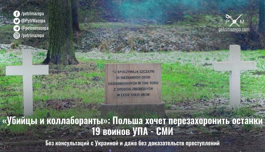 Власти города Замосць приняли решение самостоятельно и без консультаций с Украиной эксгумировать и перезахоронить останки 19 воинов УПА. При этом доказательств причастности погребенных на воинском кладбище Ротонда к воинским преступлениям нет, а с украинской стороной – несмотря на межправительственное соглашение – по этому вопросу не консультировались.
