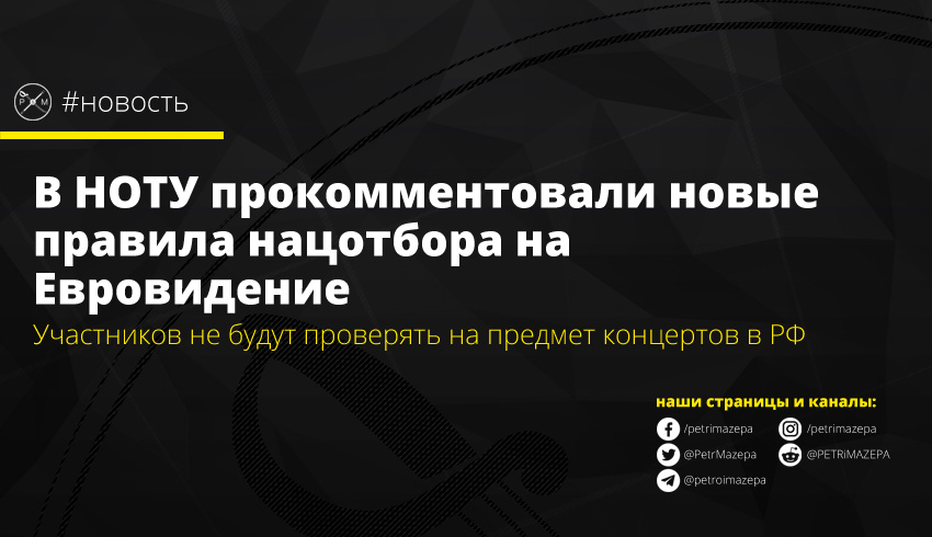Участников национального отбора на Евровидение-2020 от Украины не будут проверять на предмет выступлений на территории страны-агрессора. По словам главы правления Национальной общественной телерадиокомпании Украины (НОТУ), участник или коллектив предварительно должен понимать, на что он соглашается и это уже его ответственность в случае обмана НОТУ.