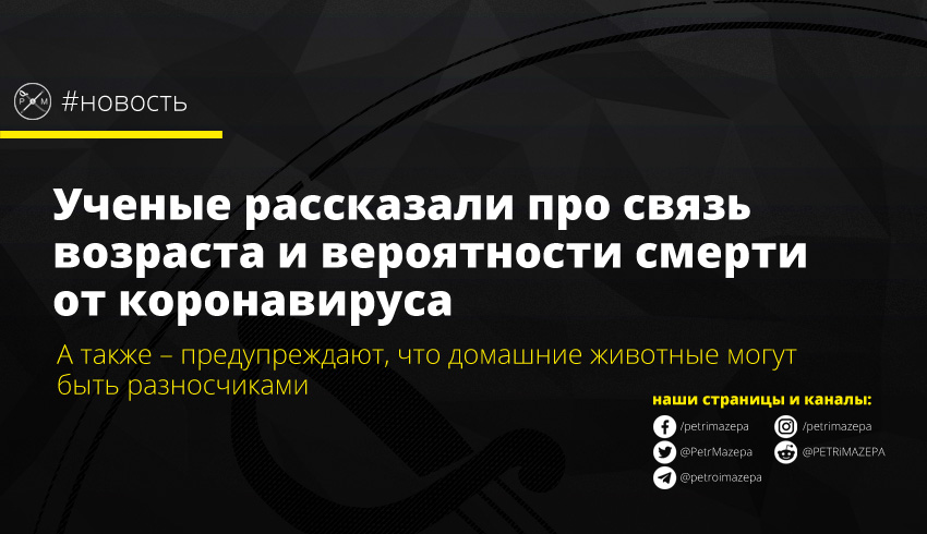 В Китайском журнале эпидемиологии опубликовали статистику по результатам исследования 72 314 случаев COVID-19. Анализ показывает, что с возрастом пациента вероятность его смерти от заболеваний, вызванных коронавирусом, растет вплоть до 14,8% у возрастной категории 80+ лет. Также чаще умирают от осложнений мужчины и/или больные сердечно-сосудистыми заболеваниями. В МОЗ снова указывают на возможность распространения заболевания домашними животными.