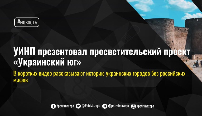 Украинский институт национальной памяти сегодня представил первый видеоролик из серии краеведческих фильмов-лекций о степной Украине под общим названием «Украинский юг». Цель этого просветительского проекта - деконструировать российские имперские мифы об истории Северного Причерноморья.