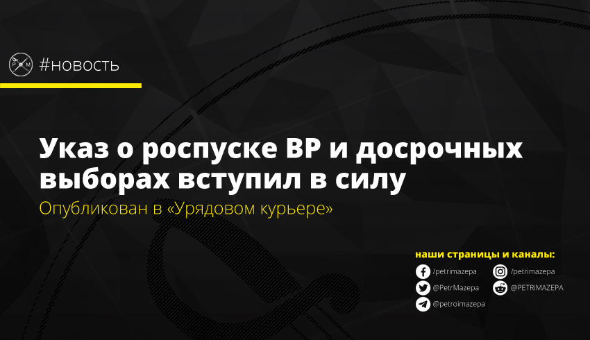 Указ о роспуске ВР и досрочных выборах вступил в силу