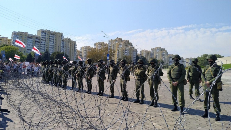 По данным «Радыё Свабода — Беларусь», протестующие собрались у стелы «Минск- - город-герой». Сама стела окружена военнослужащими с оружием, и судя по фото колючей проволокой.