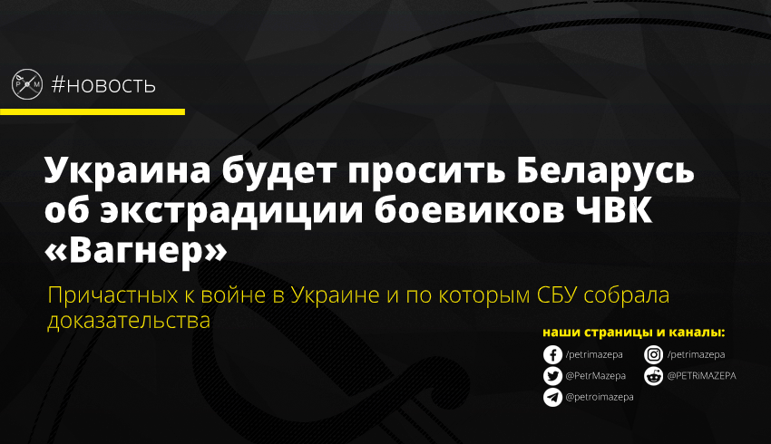 Украина обратится к Республике Беларусь с ходатайством об экстрадиции боевиков российской ЧВК «Вагнер», задержанных вчера в Беларуси.
