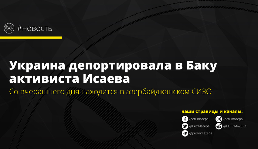 Исаева депортирован из Украины в Азербайджан за нарушение миграционного законодательства, сообщили в пресс-центре Государственной миграционной службы Азербайджана.