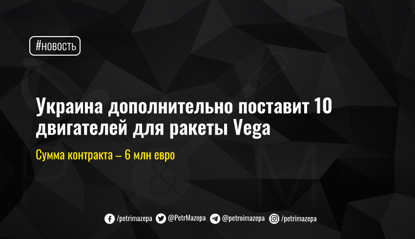 Итальянская компания Avio S.p.A., главный подрядчик для космической ракеты легкого класса Vega, покупает 10 дополнительных двигателей РД-843 у КБ «Южное» и завода «Южмаш». На «Южмаше» выразили благодарность дипломатам, которые были на связи с руководством Avio S.p.A. и Итальянским космическим агентством.