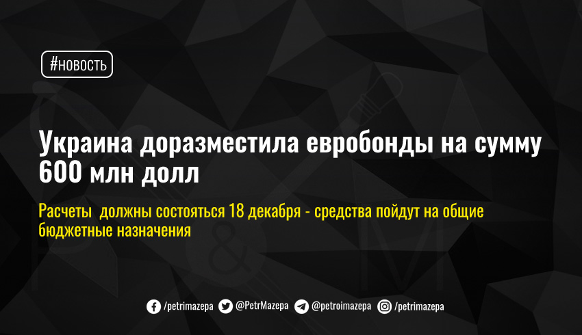 В пресс-центре Министерства финансов отметили, что довыпуск прошел с доходностью 6,20% и ценой предложения при вторичном размещении 108,914%. BNP Paribas and Goldman Sachs International выступили совместными лид-менеджерами транзакции. Расчеты по выпуску должны состояться 18 декабря 2020 года. Средства, которые будут привлечены, планируют использовать для финансирования общих бюджетных назначений.