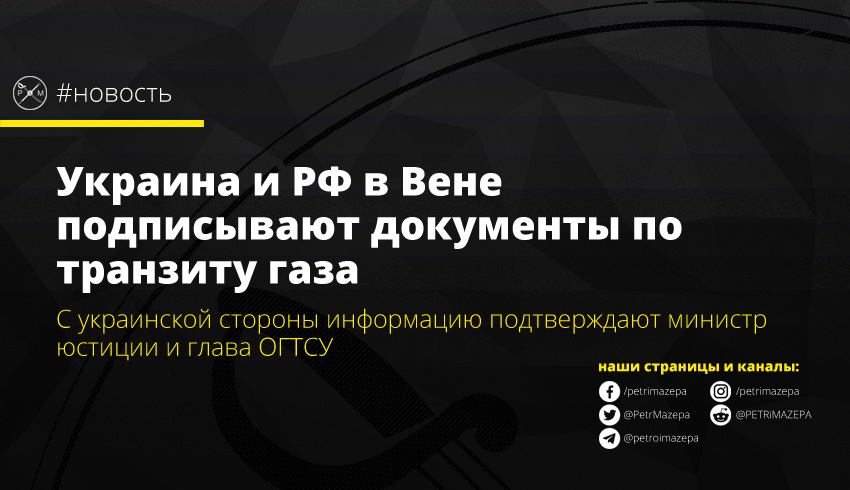 Министр юстиции Украины Денис Малюска в Facebook опубликовал фото подписания документов и сообщил, что речь идет об окончательном достижении соглашений по транзиту газа.