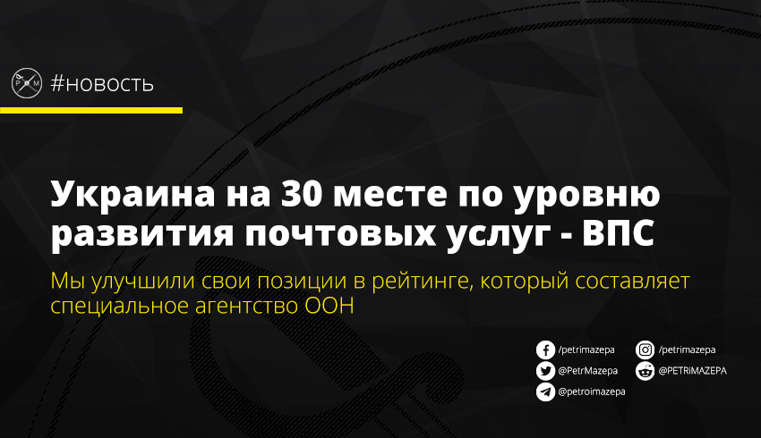 Украина на 30 месте по уровню развития почтовых услуг - ВПС