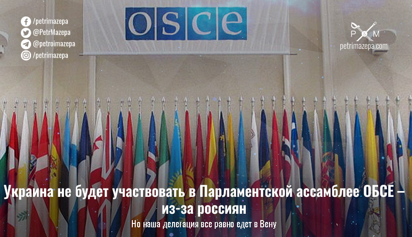 Украинская делегация не будет участвовать в заседаниях и других мероприятиях ПА ОБСЕ из-за присутствия там россиян. Но наша делегация все равно будет в Вене, чтобы провести переговоры с партнерами и совместно найти пути вывода ОБСЕ из кризиса.