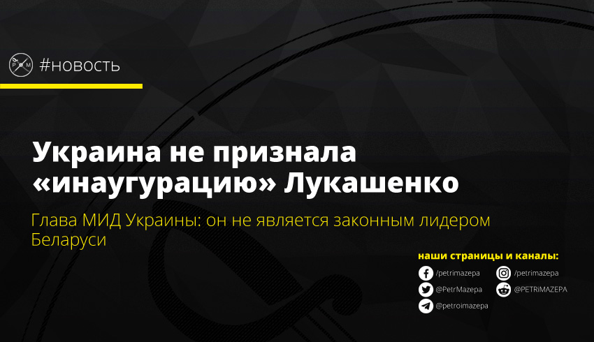 Как написал глава МИД Украины в Twitter: «Учитывая предвыборную кампанию и последовавшие за ней события, сегодняшняя "инаугурация" Лукашенко не означает его признания законным главой белорусского государства».