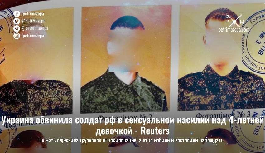 Украина обвинила двух солдат россии в сексуальном насилии, совершенном над 4-летней девочкой. Ее мать пережила групповое изнасилование, а ее отца избили и заставили за этим наблюдать, сообщает Reuters.