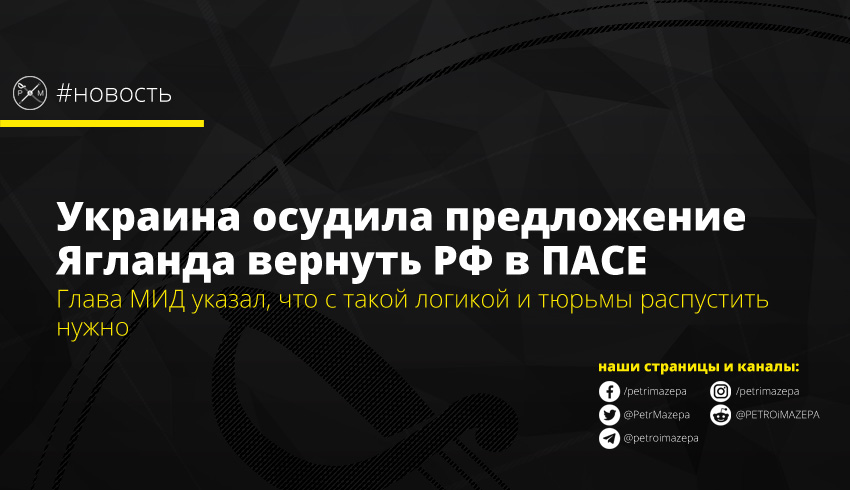 В Украине вызвало осуждение заявление генерального секретаря Совета Европы Турбёрна Ягланда о том, что стоит вернуть делегацию страны-агрессора в ПАСЕ, дабы не появилась новая «линия разделения» в Европе. С критикой озвученного предложения уже выступили постоянный представитель Украины в Совете Европы Дмитрий Кулеба и министр иностранных дел Павел Климкин.