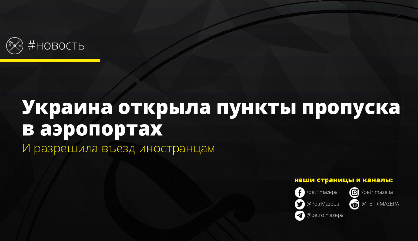 Кабмин принял решение о возобновлении работы пунктов пропуска и пунктов контроля в аэропортах Украины, а также о разрешении въезда для иностранцев. Такое решение связано с возобновлением с 15 июня международного авиасообщения.
