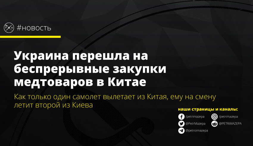 Как сообщает в Facebook заместитель председателя Офиса президента (ОПУ) Кирилл Тимошенко, доставка работает без перерывов и выходных. «Как только один самолет вылетает из Китая - ему навстречу вылетает следующий из Киева. И так каждый день», - сообщает Тимошенко.