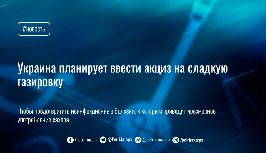 В Верховной Раде зарегистрированы два законопроекта — №9032-1 и №9033-1. Первый вводит ставку налога на минеральные и газированные воды с добавлением сахара и других подсластителей, ароматических веществ в размере 4 грн (0,1 евро) на литр напитка (в Бельгии такой налог составляет 0,53 евро, в Польше — 0,19 евро). Второй — определяет, что полученные от уплаты налога средства планируют направить на реализацию программ по предотвращению неинфекционных заболеваний и лечению от них, а также на поддержку программы детского питания в школах.
