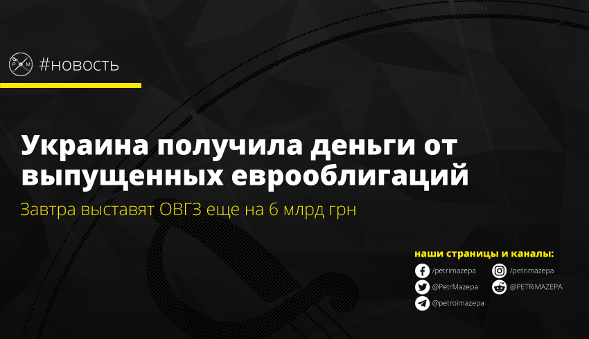 - А летом Украина разместила семилетние еврооблигации на 1 млрд евро под 6,75%. Впервые за 15 лет, украинский Минфин выпустил еврооблигации в евро.