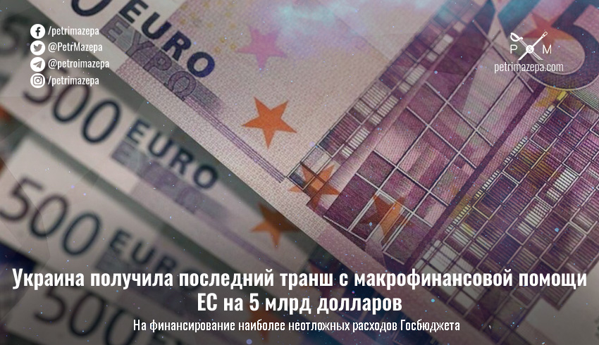 Украина получила последний транш макрофинансовой помощи ЕС на 5 млрд долларов