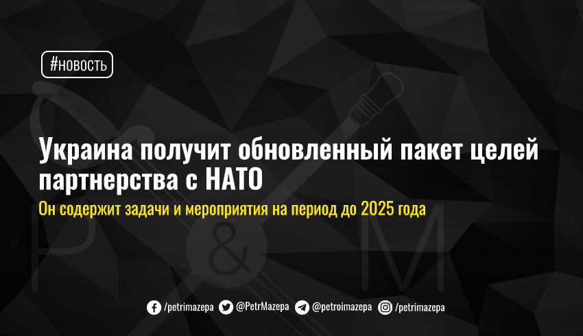 Минобороны сообщает также, что Украина первой среди стран-партнеров получит обновленный пакет целей партнерства с НАТО. Он содержит задачи и мероприятия на период до 2025 г., а также силы и средства, которые Украина готовит для участия в программе «Партнерство заради миру», операциях и миссиях Альянса.