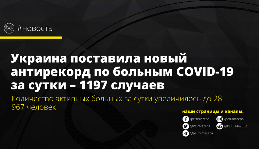 Украина поставила новый антирекорд по больным COVID-19 за сутки – 1197 случаев