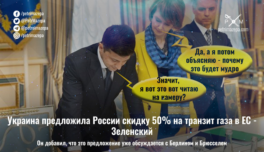 Украина предложила России скидку на поставку газа в Европу, заявил президент Владимир Зеленский.