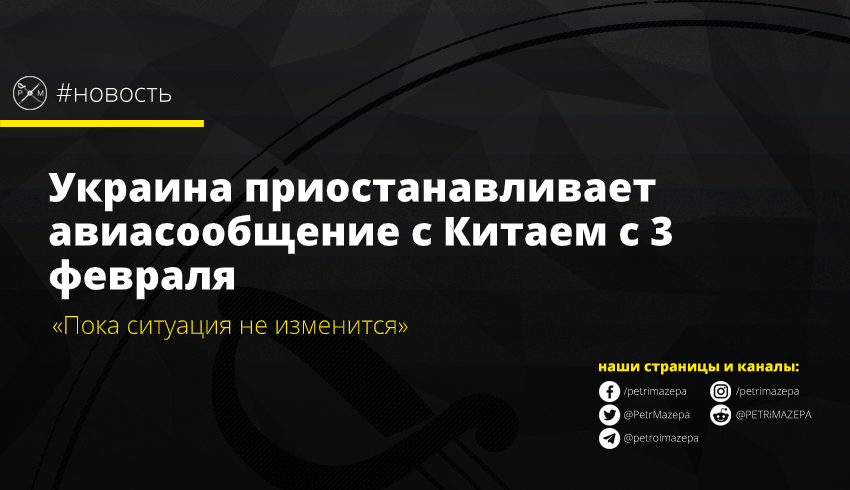Украина приостанавливает авиасообщение с Китаем с 3 февраля