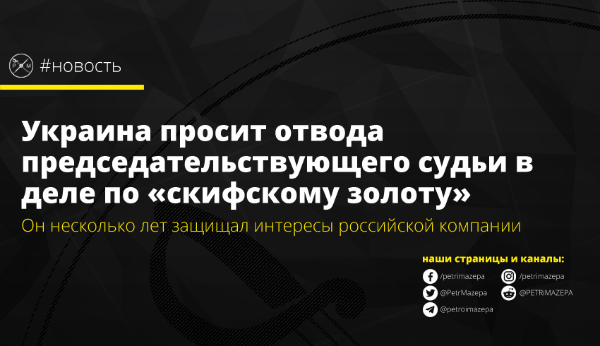 Украина подала ходатайство об отводе председательствующего судьи Апелляционного суда Амстердама, который рассматривает дело о «скифском золоте». Причина - Министерству юстиции Украины стало известно о существовании обстоятельств, которые могут свидетельствовать о его предвзятости.