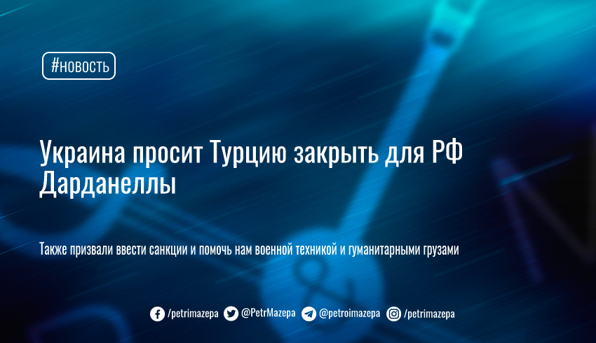 Украина просит Турцию закрыть для РФ Дарданеллы