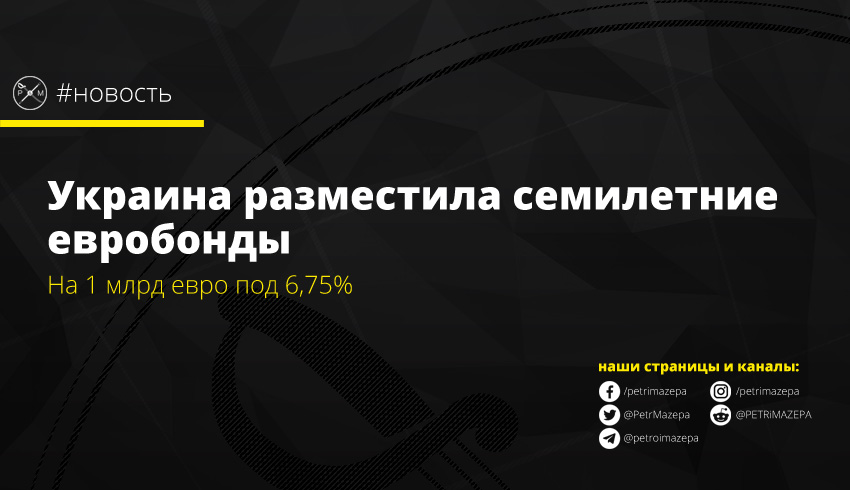 Украина разместила семилетние еврооблигации на 1 млрд евро под 6,75%. Впервые за 15 лет, украинский Минфин выпустил еврооблигации в евро, что по словам представителей министерства имеет стратегическое значение в нынешних условиях.