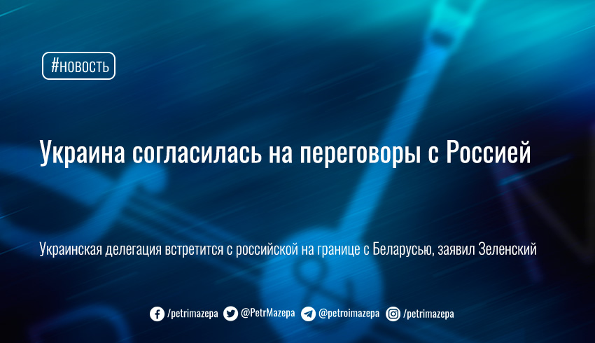 Мы договорились, что украинская делегация встретится с российской без предварительных условий на украинско-беларусской границе, в районе реки Припять, - заявил Зеленский в Telegram.