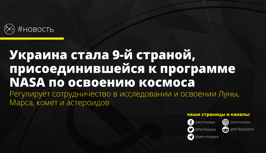 Украина стала девятой страной, которая присоединилась к программе американского космического агентства NASA «Артемида». Программа регулирует международное сотрудничество в исследовании и освоении Луны, Марса, комет и астероидов.