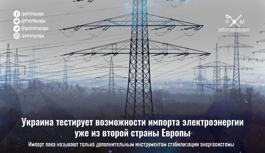 Украина тестирует возможности импорта электроэнергии уже из второй страны Европы