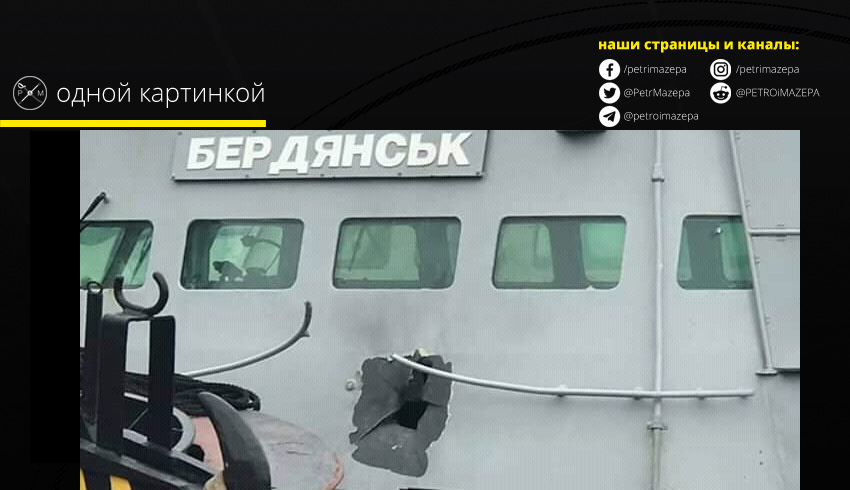 Заместитель постоянного представителя Украины при международных организациях в Вене Игорь Лоссовский во время заседания форума ОБСЕ озвучил результаты баллистической экспертизы. Полученные данные доказывают, что катер «Бердянск» был пробит бронебойным снарядом, выпущенным из российского вертолета Ка-52.