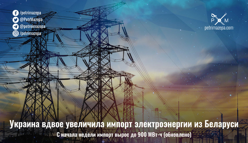 29 ноября Украина импортирует из Беларуси электроэнергию в размере 900 МВт-ч каждый час, тогда как на прошлой неделе – 415 МВт-ч.