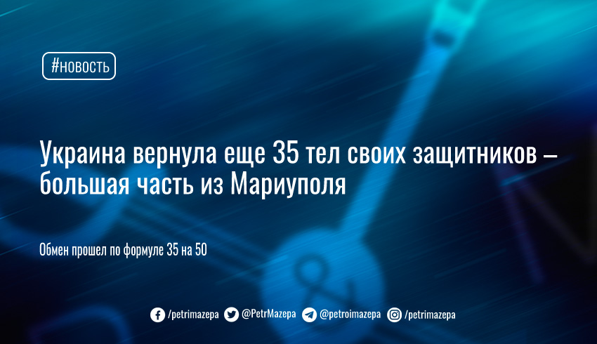 В пресс-службе Главного управления разведки (ГУР) Минобороны Украины уточнили, что обмен был проведен по формуле 35 на 50. 25 из 35 возвращенных тел погибших украинских военнослужащих — из Мариуполя.