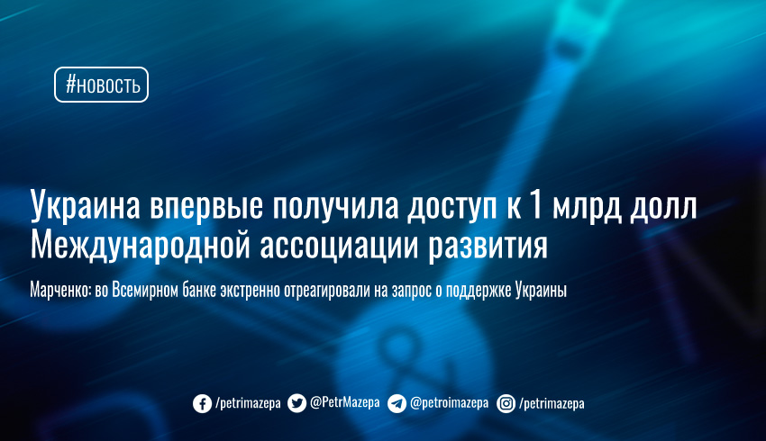 Украина впервые получила доступ к финансовым ресурсам в 1 млрд долларов Международной ассоциации развития (IDA), которая является частью Всемирного банка.