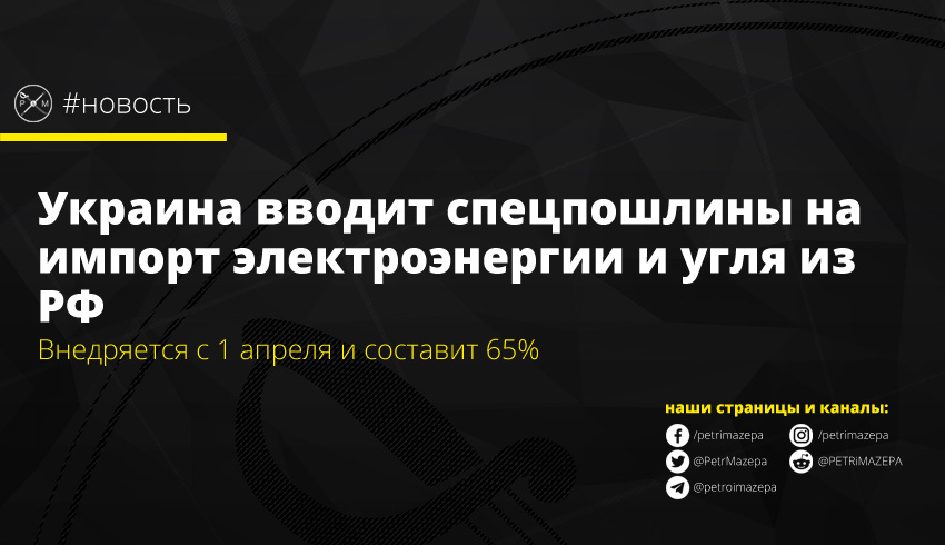 Украина вводит спецпошлины на импорт электроэнергии и угля из РФ
