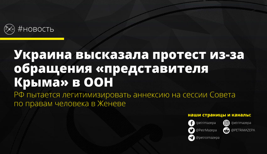 Украина высказала официальный протест в связи с видеообращением представителя оккупационной администрации Крыма Георгия Мурадова, показанным РФ на 43-й сессии Совета по правам человека ООН в Женеве .