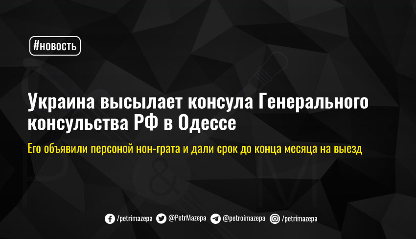 Министерство иностранных дел Украины объявило персоной нон-грата консула Генерального консульства Российской Федерации в Одессе. Он должен покинуть страну до конца дня 30 апреля, сообщается в официальном комментарии спикера МИД.