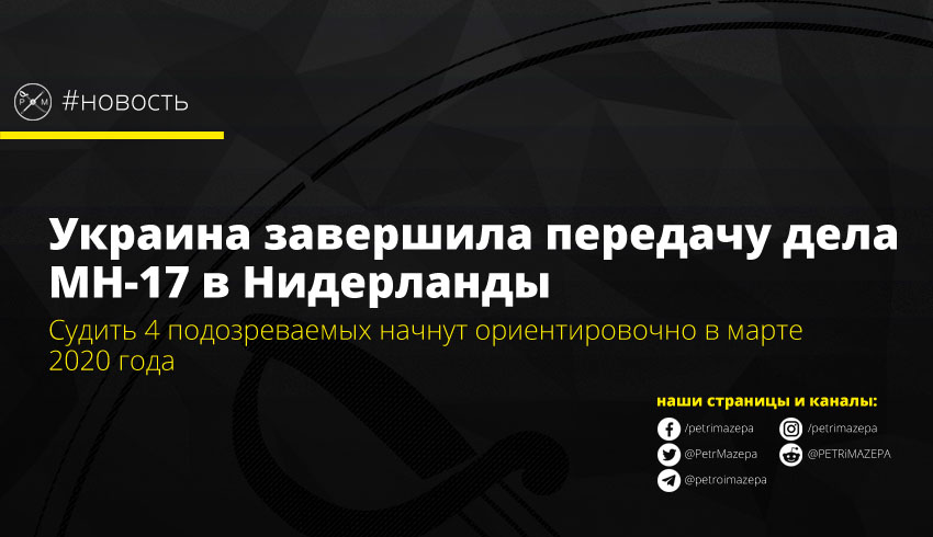 Украина передала в Королевство Нидерланды уголовное производство по делу MH-17 против четырех боевиков ОРДЛО, включая Игоря Гиркина. Суд по данному делу ориентировочно начнется в марте следующего года.