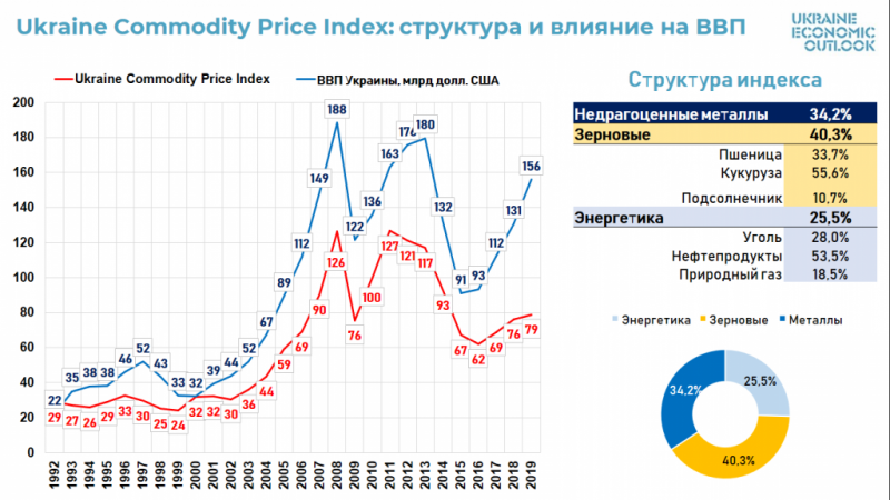 Вернусь к нашему, адаптированному под Украину Commodity Price Index и напомню, что до 2019 года в основном 70-80% нашего роста зависело не от внутренних реформ или повышения производительности труда, а динамики стоимости одного условного бушеля пшеницы на чикагской товарной бирже.