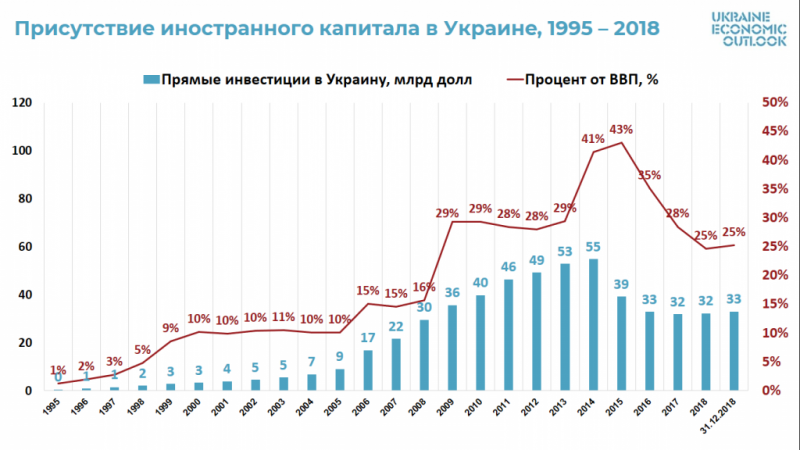 Сейчас накопленная сумма прямых иностранных инвестиций составляет всего лишь 25% ВВП, то есть остались только совершенно неэластичные к кризисам монстры. К примеру, я уверен, что, несмотря на риск девальвации до 31 грн/$, никто из табачных компаний не продаст или не закроет производство. Ну и конечно, продать функционирующий завод в кризис почти невозможно, поэтому эластичность прямых иностранных инвестиций, которые уже находятся в нашей экономики во время кризиса, минимальна.