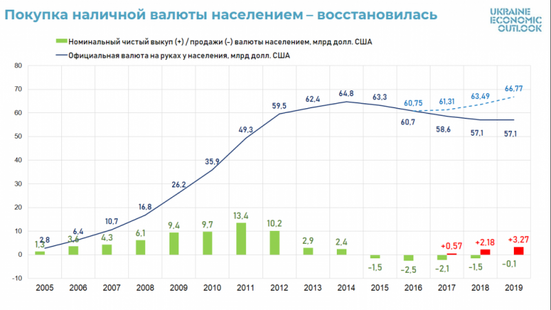 Таким образом, если скорректировать общую статистику на описанную погрешность, то легко увидеть, что в 2019-м население купило приблизительно $3,3 млрд наличной валюты для формирования сбережений. По нашей оценке, при резкой девальвации в 4 квартале 2020-го население по аналогии с 2008 и 2014-2015 гг. может выкупить дополнительно ещё $4 млрд.