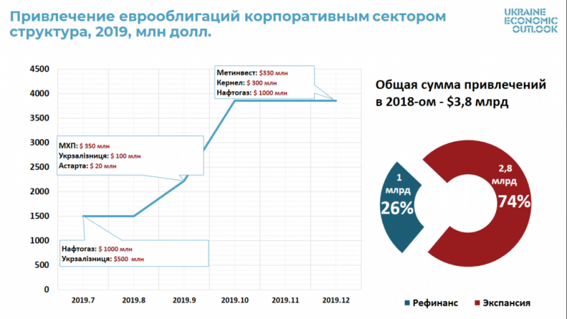 В базовом макропрогнозе на 2020 год сумма корпоративных привлечений должна вырасти до $6 млрд. При спаде в 4 квартале 2020-го все позиции на Украину будут закрыты, и мы потеряем ориентировочно ещё $2 млрд потенциальных поступлений.