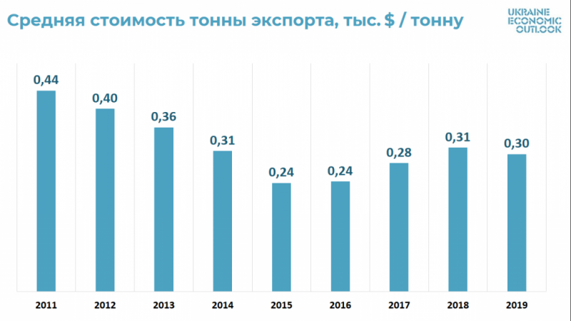 Обратите внимание на среднюю стоимость одной тонны экспорта. Сегодня это всего $300 тыс., что соответствует уровню 2014 года. То есть ситуация обвала цен на сырьевые на 100-300%, как в 2008-м, сейчас невозможна, котировки подкреплены спросом реального сектора.