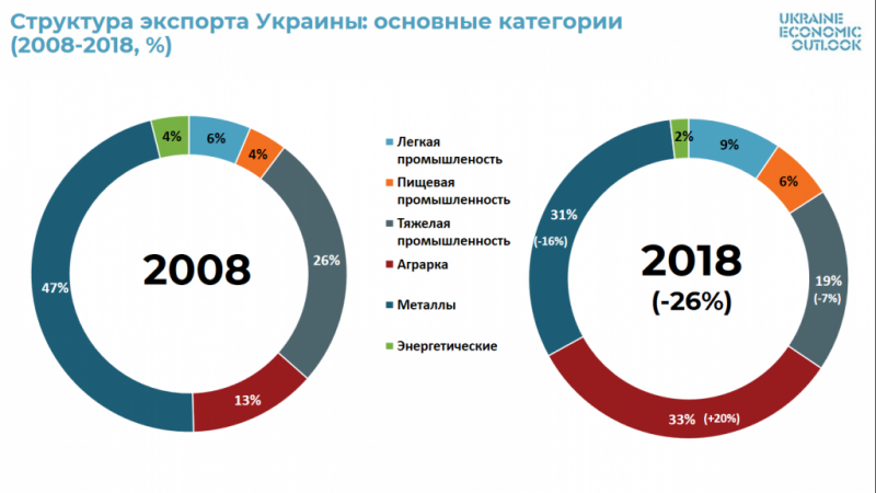 Например, в 2008-2009 гг. экспорт тяжёлой промышленности, которая шла преимущественно в СНГ, в частности Россию, упал на 60%. Так как хоть это и продукция с высоким переделом, обвалившие Россию цены на нефть автоматически снизили их покупательную способность.