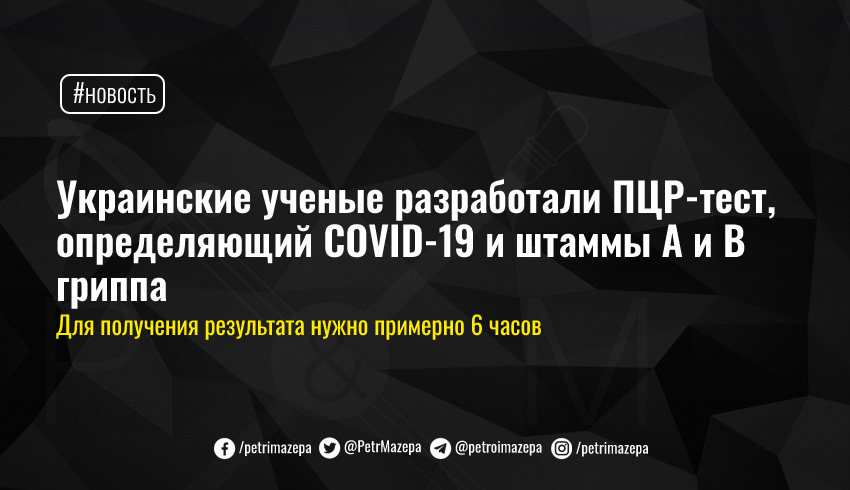 Украинские ученые разработали ПЦР-тест, который может одновременно определить COVID-19 и штаммы А и В вируса гриппа. Проведение такого комбинированного теста длится примерно 6 часов.