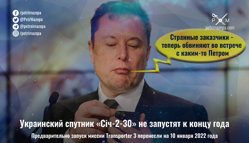 Украинский спутник «Січ-2-30» не запустят в юбилейном для независимости Украины 2021 году. По контракту между КБ «Южное» и европейской компании ISILaunch, которая занимается сбором спутников от разных заказчиков для миссий SpaceХ, выведение на орбиту «Січі» должно было состояться в декабре.