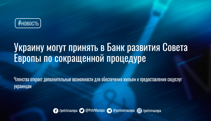 Украину могут принять в Банк развития Совета Европы по сокращенной процедуре