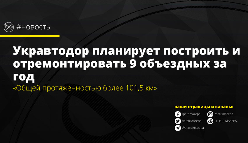«В частности, в 2020 году планируется продолжить строительство Северной объездной г. Житомир, Северной объездной г. Ровно, Северо-Западной объездной г. Полтава, Южной объездной г. Днепр, объездной дороги г. Дунаевцы (на участке между Черновцами и Хмельницким). Также начнутся работы по строительству Северной объездной г. Львов и Северной объездной г. Тернополь. Во время строительства одного из приоритетных объектов 2020 года – скоростного шоссе Н-31 Днепр – Решетиловка, планируется построить объездную в г. Кобеляки в Полтавской области. Также в планах строительство объездной г. Береговое», - информирует Укравтодор в Facebook.