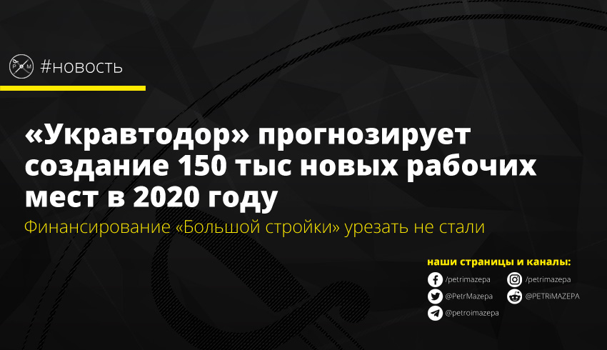 «Укравтодор» прогнозирует создание 150 тыс новых рабочих мест в 2020 году